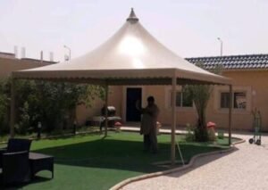 نقدم أحدث حلول المظلات الهرمية التي تجمع بين الفخامة والقوة في التصميم، لتمنحك مظهراً عصرياً وحماية متكاملة من حرارة الشمس والأمطار. تُعد المظلات الهرمية الخيار المثالي لتظليل مواقف السيارات، والساحات، والمنتزهات، والمدارس، والاستراحات لما تتميز به من شكل هندسي أنيق وثبات عالي ضد الرياح. نستخدم خامات عالية الجودة مثل قماش PVC وبي في دي إف واللكسان المقاوم للأشعة فوق البنفسجية، مع هيكل حديدي مطلي ضد الصدأ يضمن طول العمر والمتانة. يعمل فريقنا بخبرة ودقة هندسية عالية في تصميم وتنفيذ المظلات الهرمية بأحجام وألوان متعددة تناسب جميع الاحتياجات. نلتزم بتسليم العمل في الوقت المحدد وبجودة تضيف لموقعك لمسة فخمة ترفع من قيمته وجماله.