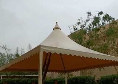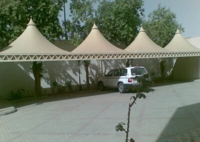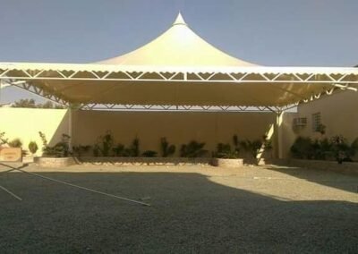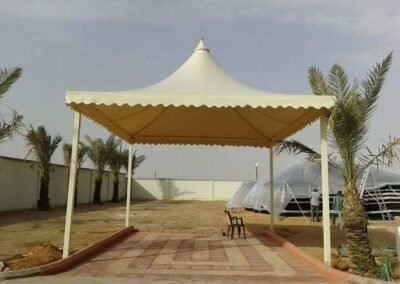 نقدم أحدث حلول المظلات الهرمية التي تجمع بين الفخامة والقوة في التصميم، لتمنحك مظهراً عصرياً وحماية متكاملة من حرارة الشمس والأمطار. تُعد المظلات الهرمية الخيار المثالي لتظليل مواقف السيارات، والساحات، والمنتزهات، والمدارس، والاستراحات لما تتميز به من شكل هندسي أنيق وثبات عالي ضد الرياح. نستخدم خامات عالية الجودة مثل قماش PVC وبي في دي إف واللكسان المقاوم للأشعة فوق البنفسجية، مع هيكل حديدي مطلي ضد الصدأ يضمن طول العمر والمتانة. يعمل فريقنا بخبرة ودقة هندسية عالية في تصميم وتنفيذ المظلات الهرمية بأحجام وألوان متعددة تناسب جميع الاحتياجات. نلتزم بتسليم العمل في الوقت المحدد وبجودة تضيف لموقعك لمسة فخمة ترفع من قيمته وجماله.